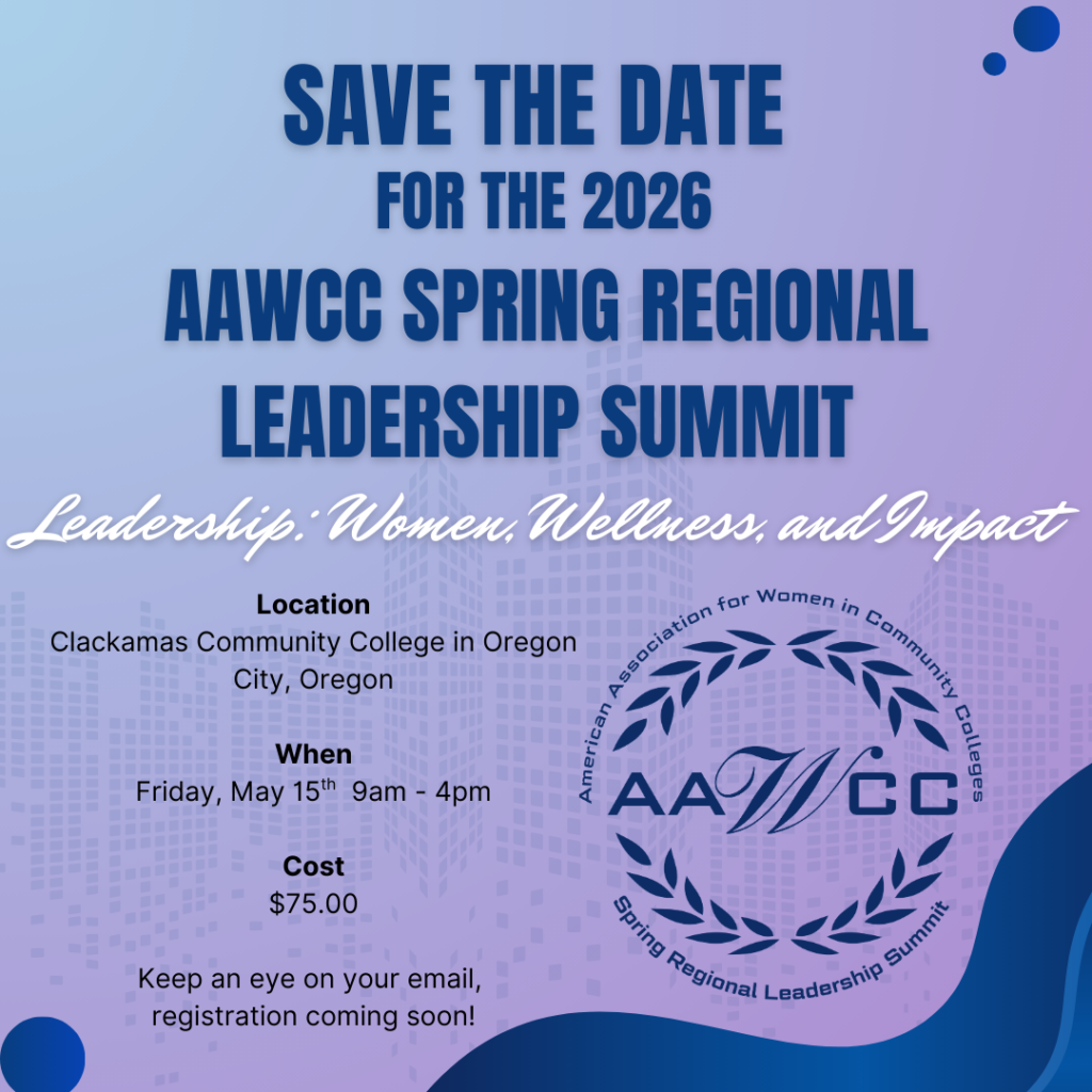 The summits will contain high quality content to help you grow and lead from where you are at or, grow into your next position. We’ll have workshops on communication, creating a culture of connection and belonging on your campuses and leadership sessions as well as an optional networking hour to help you create resources and relationships across colleges. Whether you work in janitorial services or you’re a college president, we’re all here with the same mission to support each other and educate ourselves to serve our campus communities better. We hope you’ll join us in creating community, belonging, and connection within the AAWCC across the state. We look forward to growing with you!